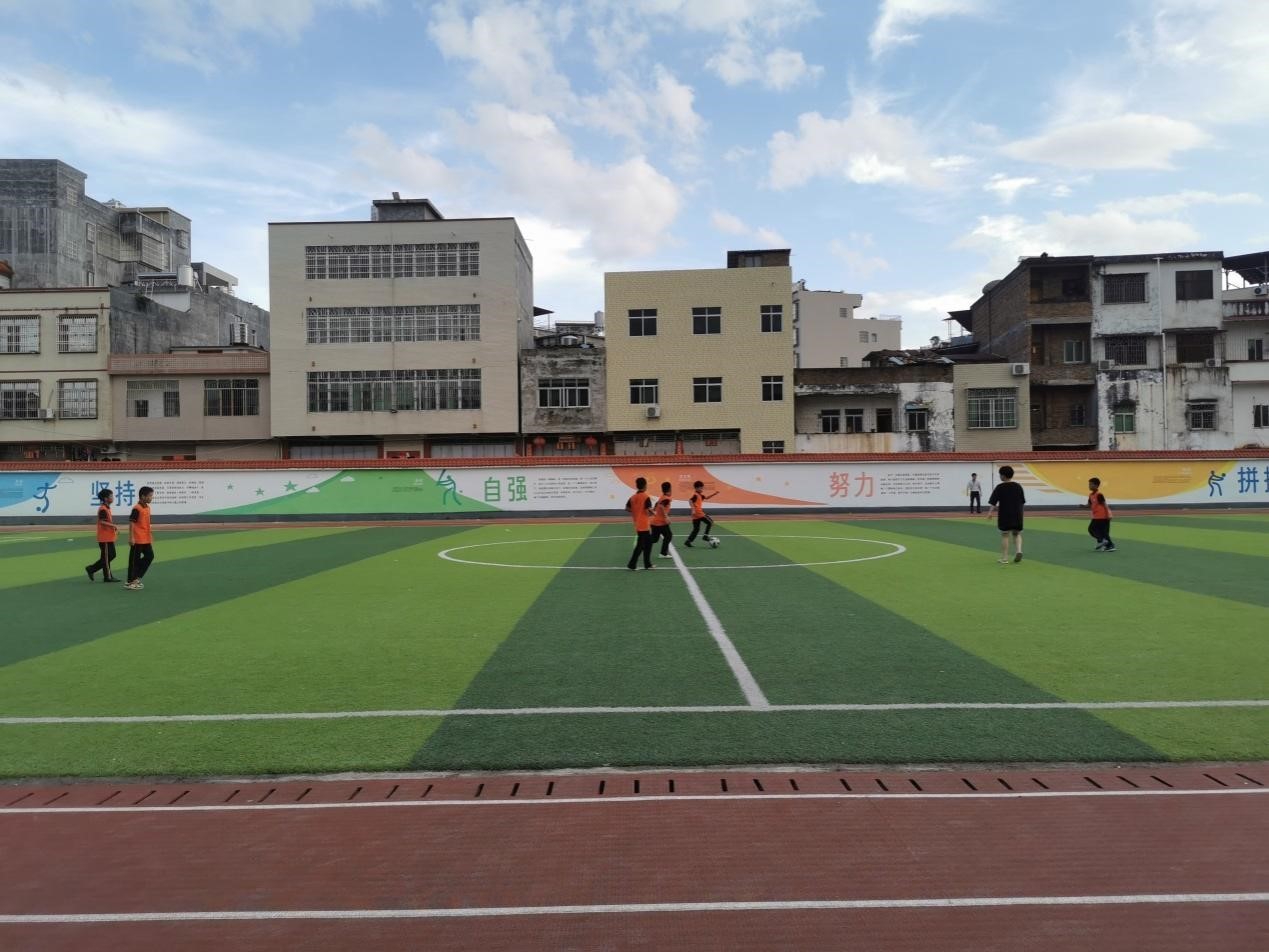 7月1日下午5时,记者走进梅州市五华县梅林镇中心小学。只见偌大的足球场上,十几名学生在踢足球,球在他们脚下传来传去,不时被射向球门。学生们不时发出欢呼的声音,其快乐的氛围感染了路过的每一个人。