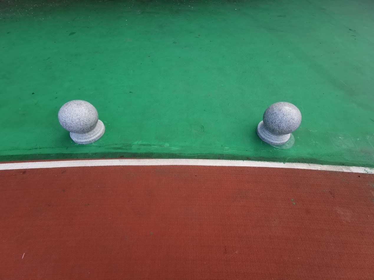 (用石凳将跑道与通道隔离)